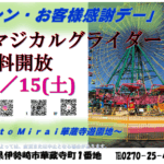 お誕生日プレゼント企画 2024年7月8日 最終更新日時 : 2024年7月8日 master お誕生日当日にご来園いただいた方に、遊園地チケット(280円券)をプレゼント。 ※お誕生日当日を証明できるもの(免許証やマイナンバーカードなど)をご提示下さい。 また、お誕生日当日が休園日の場合、翌日の営業日に引き換えいたします。